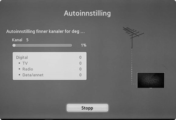 Trykk på Autoinnstilling igjen for å søke etter og lagre kanaler.